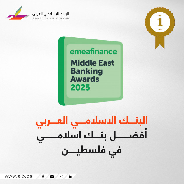 والجدير بالذكر أن البنك الإسلامي العربي حصد خلال الأعوام الماضية عدة جوائز محلية وإقليمية ودولية مرموقة، من بينها جائزة أفضل بنك إسلامي في فلسطين وأفضل مؤسسة مالية إسلامية، من مجلات ومؤسسات متخصصة مثل IFN وWorld Finance وGlobal Finance، ما يعكس استمرارية تميّزه وثقة المؤسسات الدولية بأدائه.